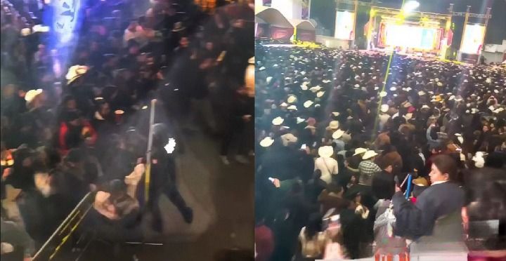 Durante la presentación de Invasores y de Cardenales de Nuevo León en el espacio gratuito de espectáculos de la Feria de San Francisco Pachuca 2025, aficionados a la música regional que caminaban por multitudes, empujaron las vallas y a los elementos de vigilancia allí dispuestos para poder pasar.
