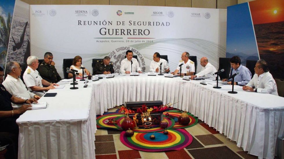 En reunión de seguridad con el gobernador de Guerrero, Héctor Astudillo Flores y con autoridades de los tres órdenes de gobierno, celebrada en el Fórum del Mundo Imperial, Osorio Chong comentó que ante el brote de homicidios en la entidad, principalmente en Acapulco, el gobierno de la República, que encabeza Enrique Peña Nieto, plantea nuevas estrategias para resolver la problemática de la violencia, "tenemos que mejorar el combate a la delincuencia y no sólo con más violencia, sino que con acciones efectivas que eviten que las personas se enrolen en la ilegalidad".