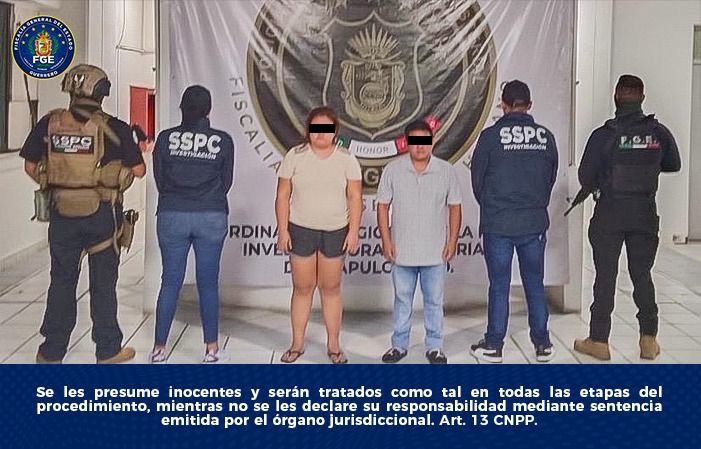 La Fiscalía General del Estado de Guerrero, en coordinación con el Ejército Mexicano, la Secretaría de Seguridad y Protección Ciudadana (SSPC), la Coordinación Nacional Antisecuestro (CONASE) y la Guardia Nacional, logró la detención de Miguel ’N’ y Raquel ’N’, presuntos integrantes de ’Los Rusos’, por el delito de contra la salud en la modalidad de narcomenudeo con fines de comercio.