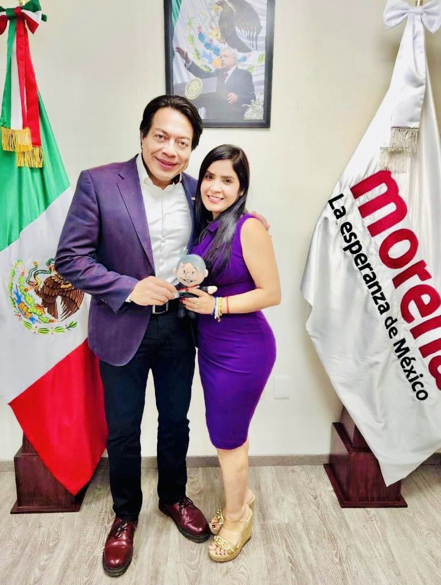 Al final, ambos políticos se tomaron la foto del recuerdo y Mario Delgado obsequió un ’AMLITO’ a Yoloczin Domínguez, mismo que la coordinadora de Morena en la 63 Legislatura, agradeció y abrazó.