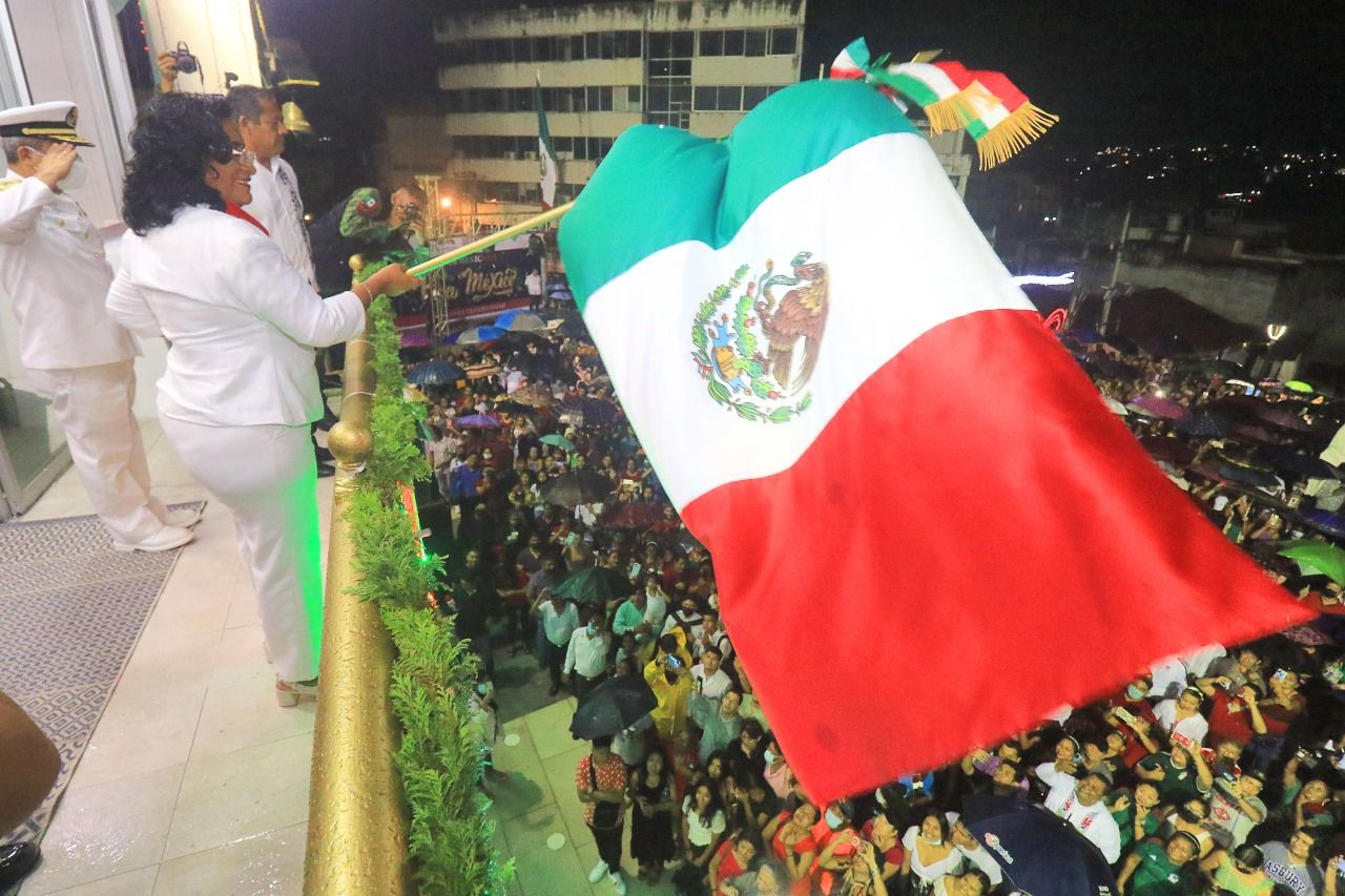’Mexicanas y mexicanos, ¡viva nuestra independencia! ¡Viva Miguel Hidalgo y Costilla! ¡Viva Ignacio Allende! ¡Viva Juan Aldama! ¡Viva doña Josefa Ortiz de Domínguez! ¡Viva José María Morelos y Pavón! ¡Viva Vicente Guerrero! ¡Viva los Bravo! ¡Viva los Galeana! ¡Viva Leona Vicario! ¡Viva Juan Álvarez! ¡Vivan los niños héroes que nos dieron patria y libertad!’, exclamó la presidenta municipal ante los asistentes que se mantuvieron en su lugar a pesar de la lluvia.