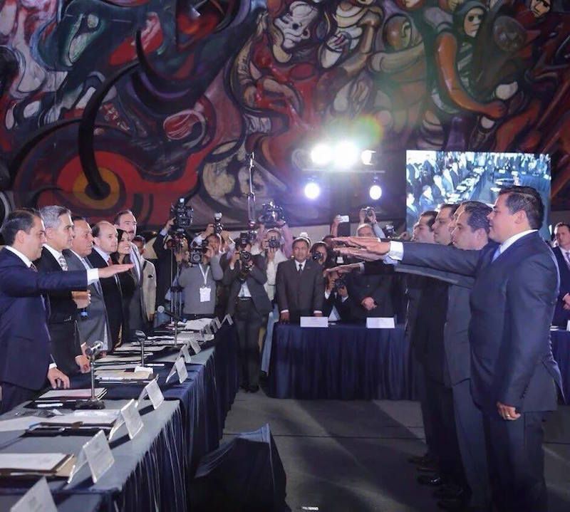 En la ceremonia estuvieron el presidente de la Cámara de Senadores, Roberto Gil Zuarth; el presidente de la Cámara de Diputados, Jesús Zambrano Grijalva; el Subsecretario de Enlace Legislativo y Asuntos Políticos y representante personal del secretario de Gobernación Miguel Ángel Osorio Chong, Felipe Solís Acero; y el Jefe de Gobierno de la Ciudad de México, Miguel Ángel Mancera, quien dijo que fortalecer al municipio significa fortalecer al Estado mexicano.