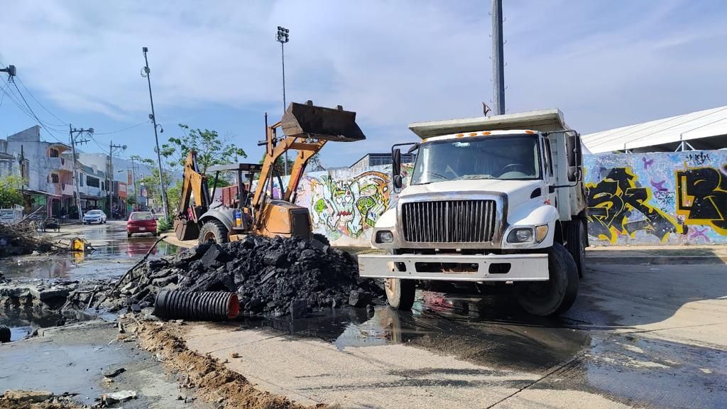El gobierno municipal que preside Abelina López Rodríguez, a través de la Comisión de Agua Potable y Alcantarillado del Municipio de Acapulco (CAPAMA), implementa brigadas emergentes de desazolves en pozos de visita y colectores que colapsaron tras el paso del huracán "Otis".