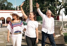 ’Vamos a seguir con el Tren Maya y lo haremos ferrocarril de carga también’, asegura la presidenta electa; ’estoy contento, tranquilo, porque el relevo va a quedar en manos de una mujer con convicciones, de principios y de buen corazón’, resalta López Obrador