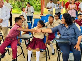 Invierte la alcaldesa porteña 13 mdp tan sólo en obras en dicha comunidad; entrega mobiliario para cuatro escuelas