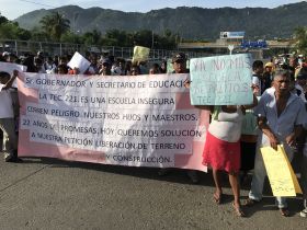 Ciudadanos, maestros y alumnos que bloquearon el bulevar "Vicente Guerrero", en Acapulco, señalaron que la Técnica 221 tiene daños por el sismo y que no les han ayudado para volver a clases