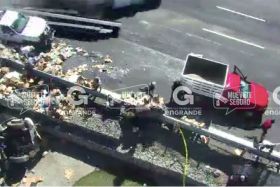 Un primer tráiler choca y se voltea, y luego un segundo arrolla personas, patrullas y periodistas y termina incendiándose.