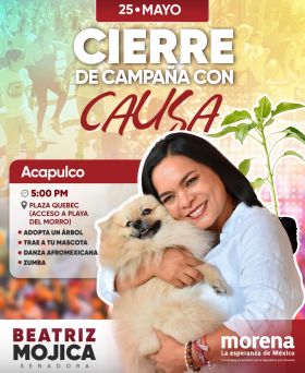 Dicho evento se desarrollará a mediodía y será amenizado por La Luz Roja de San Marcos y Mar Azul; llama nuevamente a votar cinco de cinco para que le vaya bien al pueblo de Guerrero