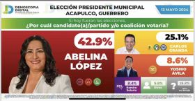 La candidata de Morena a la alcaldía de Acapulco se mantiene con amplia ventaja, para ganar los comicios el próximo 02 de junio
