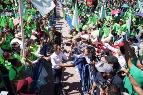 ’’Ellos hablan de que van a construir mega cárceles ¿Nosotros qué decimos? Preparatorias y universidades para los jóvenes’’, señaló; ’somos protagonistas de este cambio verdadero’’, indicó