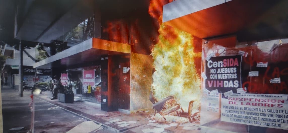 Activistas que viven con VIH quemaron, en el marco del Día Mundial de la Lucha contra el Sida, el edificio del Centro Nacional para la Prevención y Control del VIH y el sida (Censida) para denunciar la escasez de medicamentos.