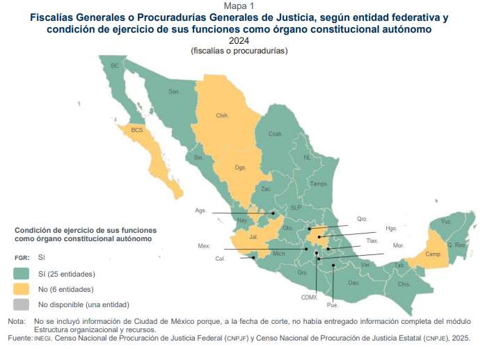 La Procuraduría General de Justicia del Estado (PGJEH) es la de peor desempeño del país de acuerdo con el Censo Nacional de Procuración de Justicia Federal y Estatal (CNPJF-E) 2025 del Inegi.