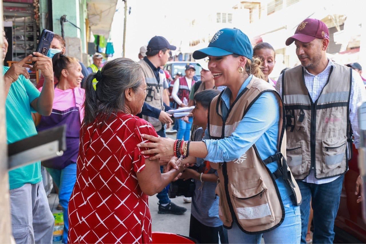 En su visita, la gobernadora recorrió la calle Bernal Díaz del Castillo junto con los comerciantes y pobladores con quienes verificó los avances alcanzados durante estas brigadas de atención.